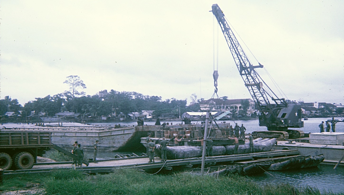5 - Tank retreiver taking out old french bridge parts from first bridge site